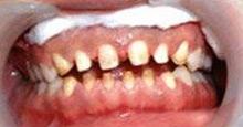 传统金属烤瓷牙制作工艺落后,制作粗糙,牙齿缝隙较大,容易积累污垢,而且金属离子沉积于 颈缘牙龈,牙龈变黑,烤瓷牙颈缘发黑,影响牙齿美观。